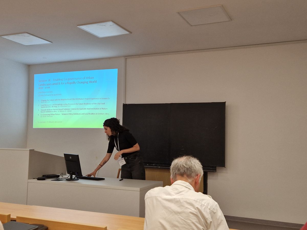 As part of the session, Nele Janssen, project coordinator in Leuven, gave insights on the city's work with two pilot sites within our project. Her presentation, 'Shaping the Future with the Neighborood: the JUSTNature Project Experience in Leuven' explained how a temporary green installation was set up in Leuven to demonstrate the potential benefits of greening, and to serve as a tool to engage the local community in the design process. The test installation showcased the potential impact of green interventions on the neighborhood and the benefits and challenges of experimenting with more collaborative approaches toward NbS governance. The presentation also provided an overview of how Leuven involved local residents and stakeholders through participatory workshops, surveys, and presentations before, during, and after the interventions. Feedback from these workshops led to adjustments in the design, providing real-time insights into the feasibility of NbS and fostering community ownership and recognition during the transformation process.