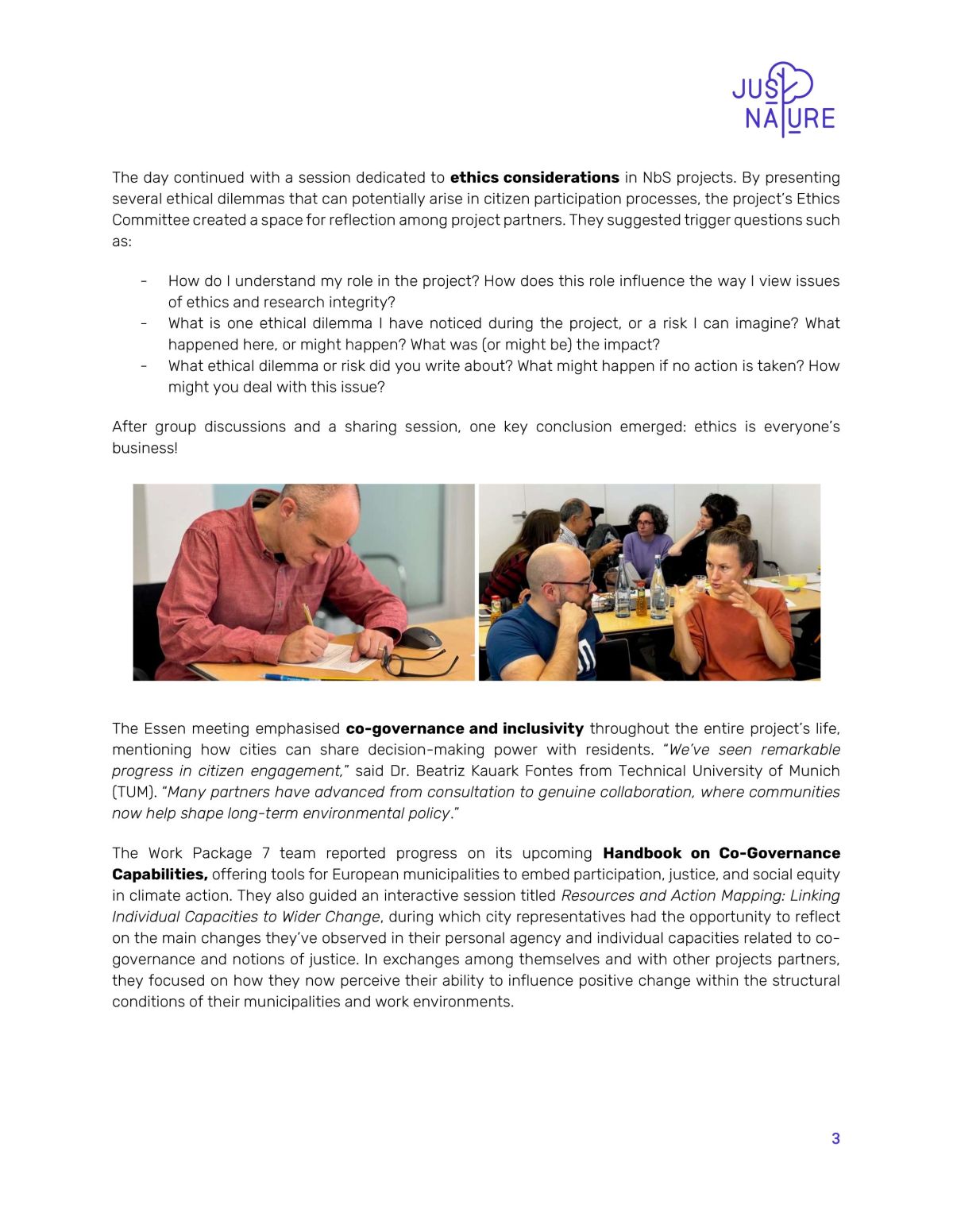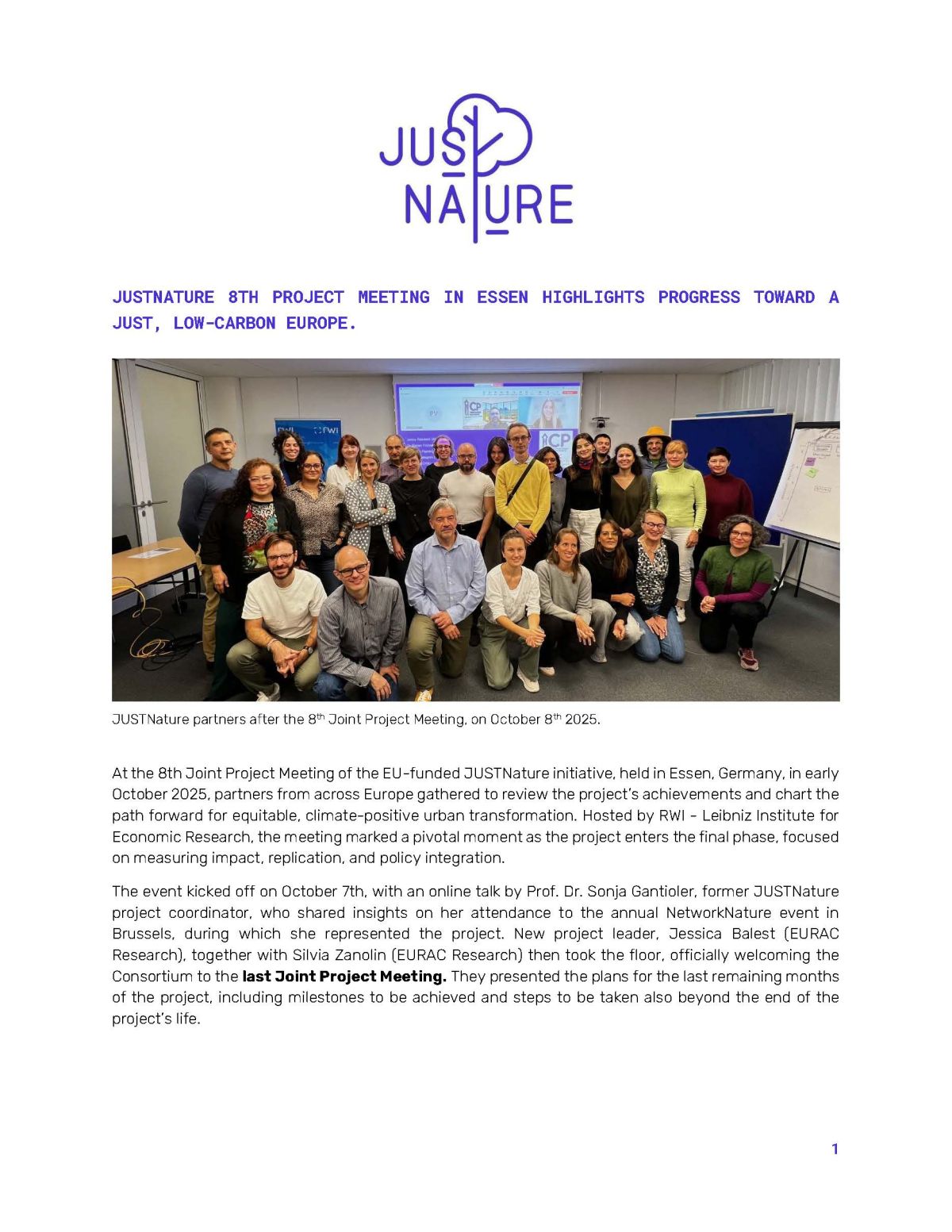 The JUSTNature Consortium met in Essen (Germany) on October 7th and 8th 2025 to hold the 8th and last Joint Project Meeting.