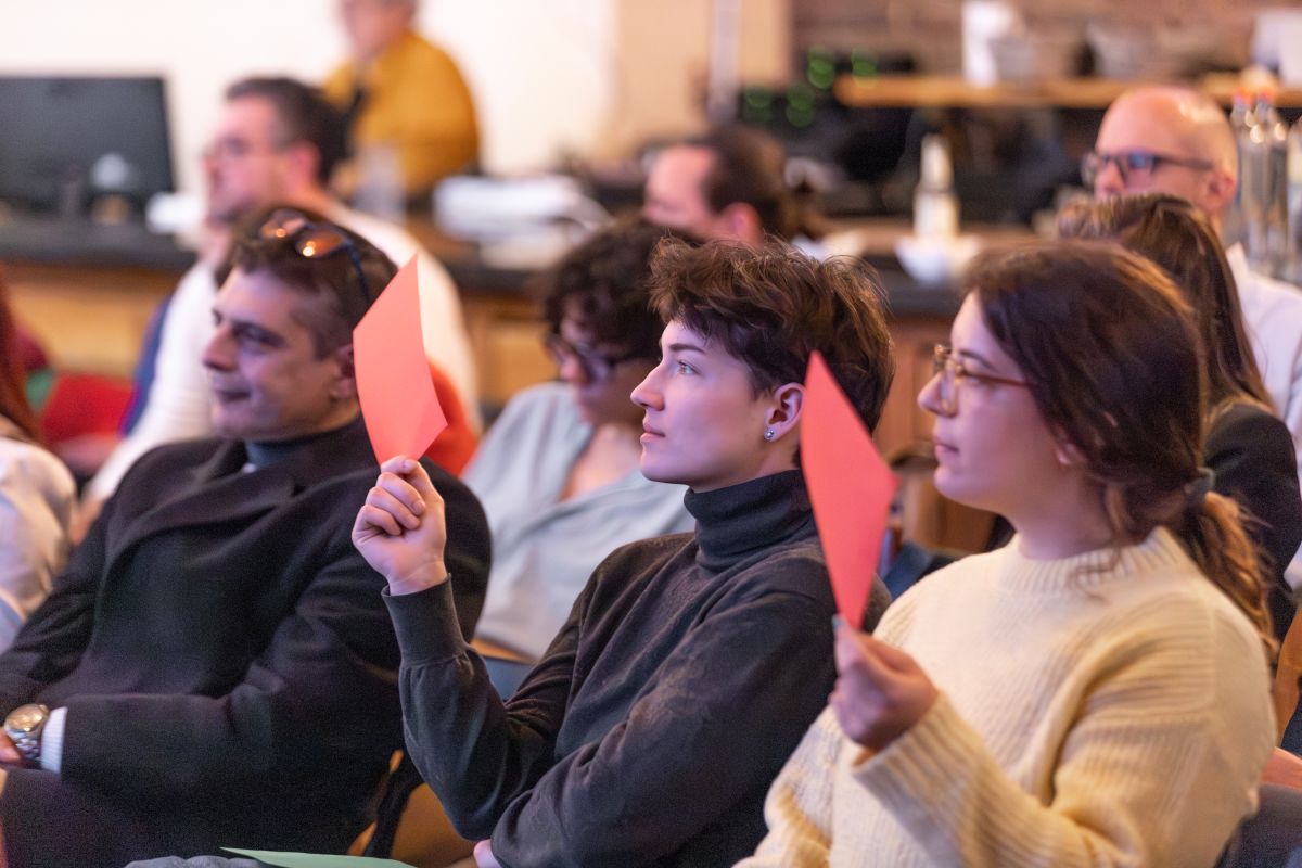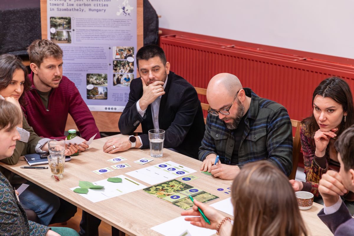 The morning programme wrapped up with two parallel sessions. On one hand, the interactive presentation of the Nature-Building Community boardgame, led by Viktor Bukovszki (ABUD). On the other one, the collection of talks Co-Governance, Justice and Nature-based Solutions: Stories from Europe and Beyond, which counted with three presentations and a roundtable, moderated by Martina van Lierop (Technical University of Munich). The presenters discussed:
