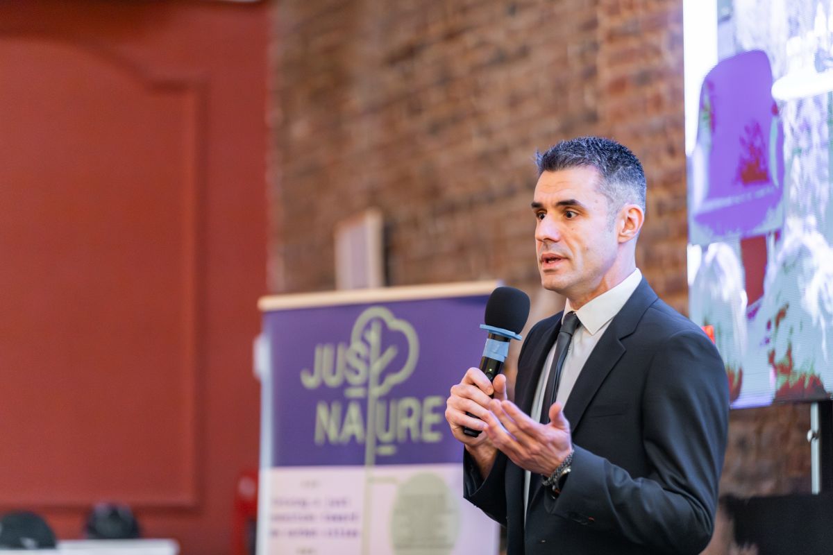 The Final Conference kicked off in a full room on the morning of February 10 in Brussels, with a welcome speech by Project Officer Georgios Charalampous (EC), who celebrated the project's impact, and emphasised the importance of scaling up its results. He was followed by Dr. Jessica Balest (Eurac Research), JUSTNature coordinator, with an opening speech about the project's overall journey and our work advancing ecological justice through collaborative innovation.