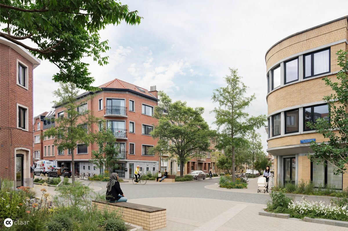 Residents were able to explore the design through detailed plans and renders. The one-way traffic and traffic filter tested during the pilot proved successful and will remain in place. This change frees up space for green areas: the redesigned street will consist of 24% green space, while 16% permeable paving will ensure rainwater can infiltrate into the soil. In addition, the possibility of installing a district heating network beneath the street is still being explored.