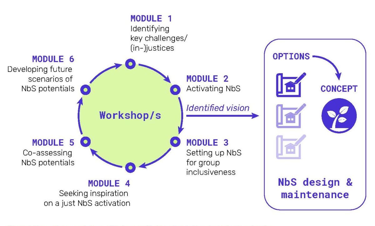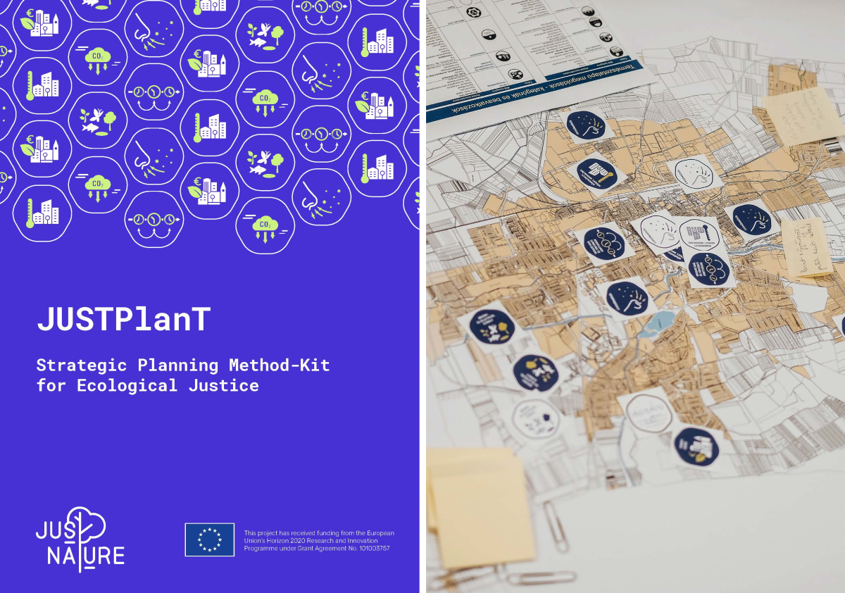 This deliverable introduces the Strategic Planning Method-kit for Ecological Justice – JUSTPlanT, a practical guide designed to facilitate collaborative and participatory processes in the design and planning of NbS that effectively tackle urban challenges. The method-kit provides practical guidelines and methods to empower users to develop integrated and inclusive strategies for implementing NbS in their communities.
